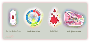 – النزيف الرحمي: نزيف ما قبل الحيض أو النزيف بين الدورات الشهرية.